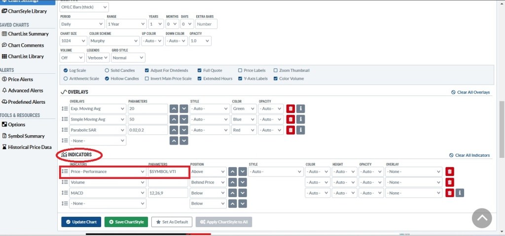 Como algunos ya habrán notado, el cálculo de este tipo de indicadores requiere software especializado. Existen varias páginas web que ofrecen este software, tanto de manera gratuita como de paga. Para los ejemplos, voy a recomendar y utilizar la página Stockcharts.com, que es gratuita, fácil de usar y entender. Al final del artículo, incluiré una guía sobre cómo configurarla para aplicar estos indicadores.