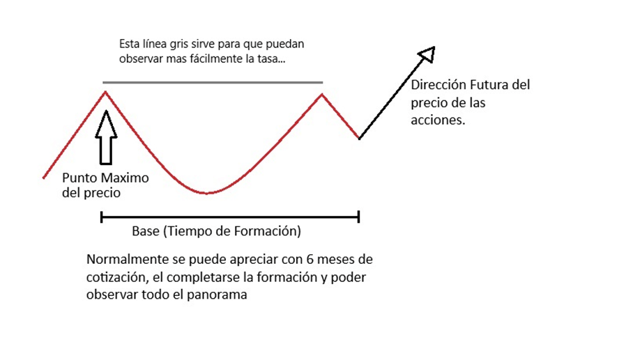 - La acción debe mostrar una tendencia alcista previa de al menos un 30% antes de formar la «taza». Alternativamente, debe haber subido mínimo un 20% desde su última ruptura significativa del precio (una resistencia clave).
